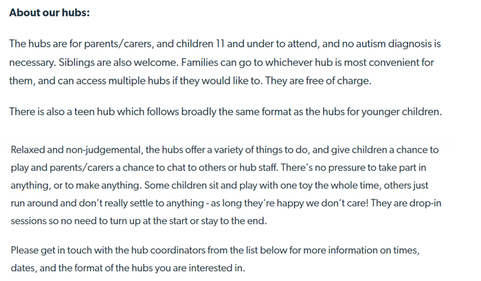 They provide a range of services for autistic children, young people and their families, including: