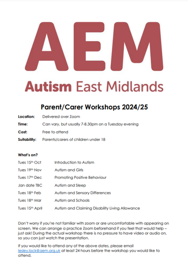 Autism East Midlands 'provide a wide range of care, support and educational services to meet the needs of autistic individuals of all ages, and their families and carers.'