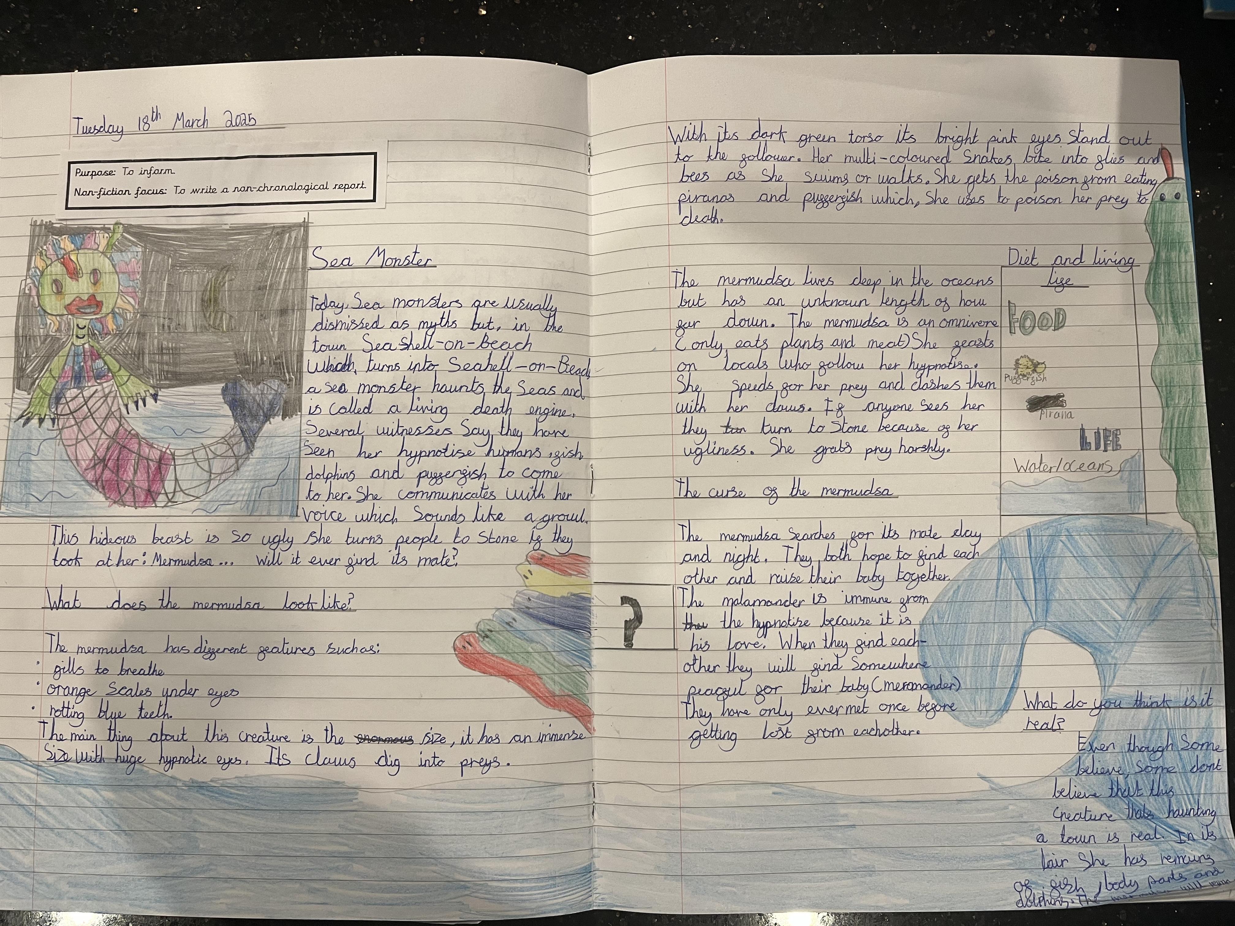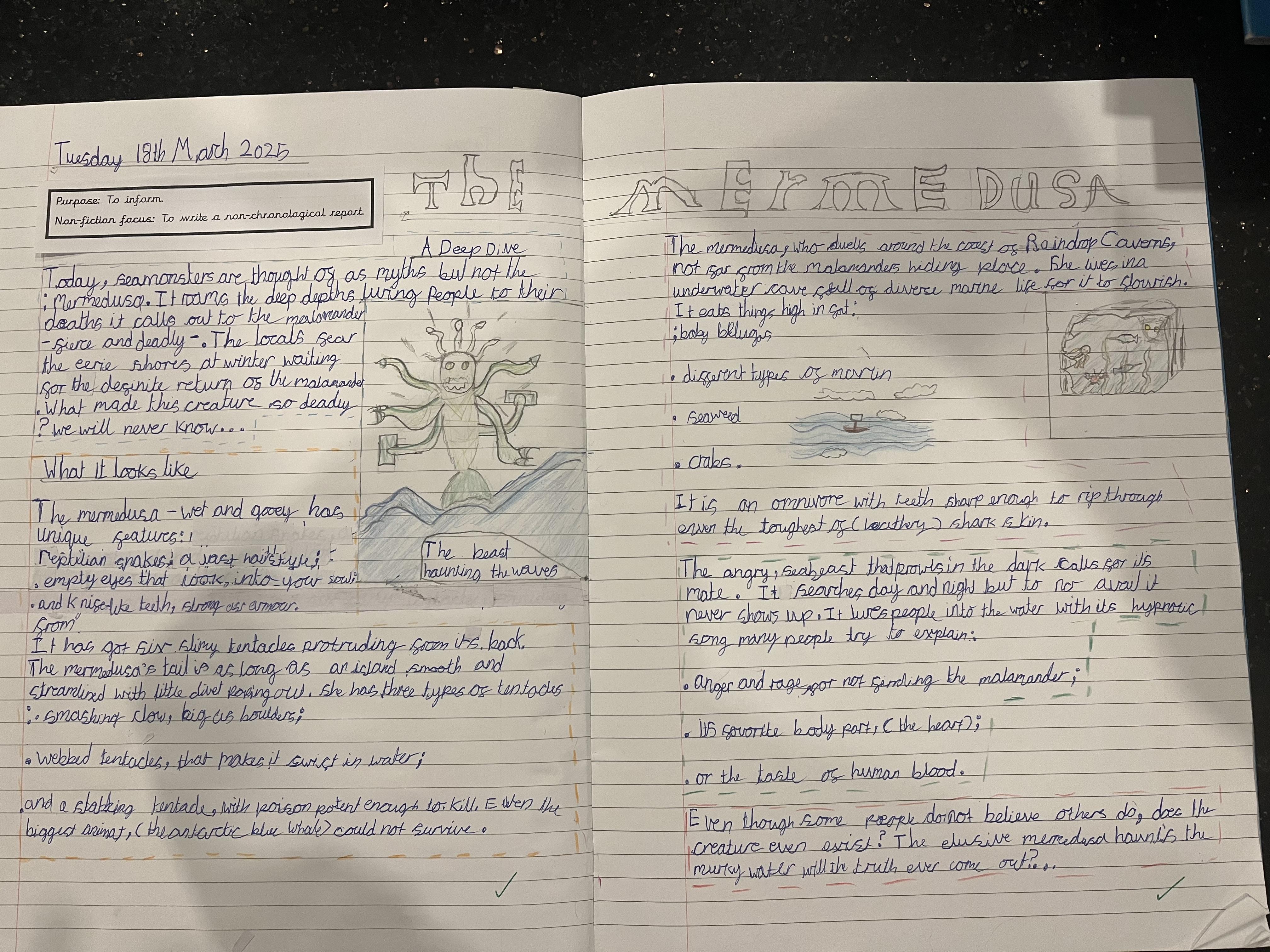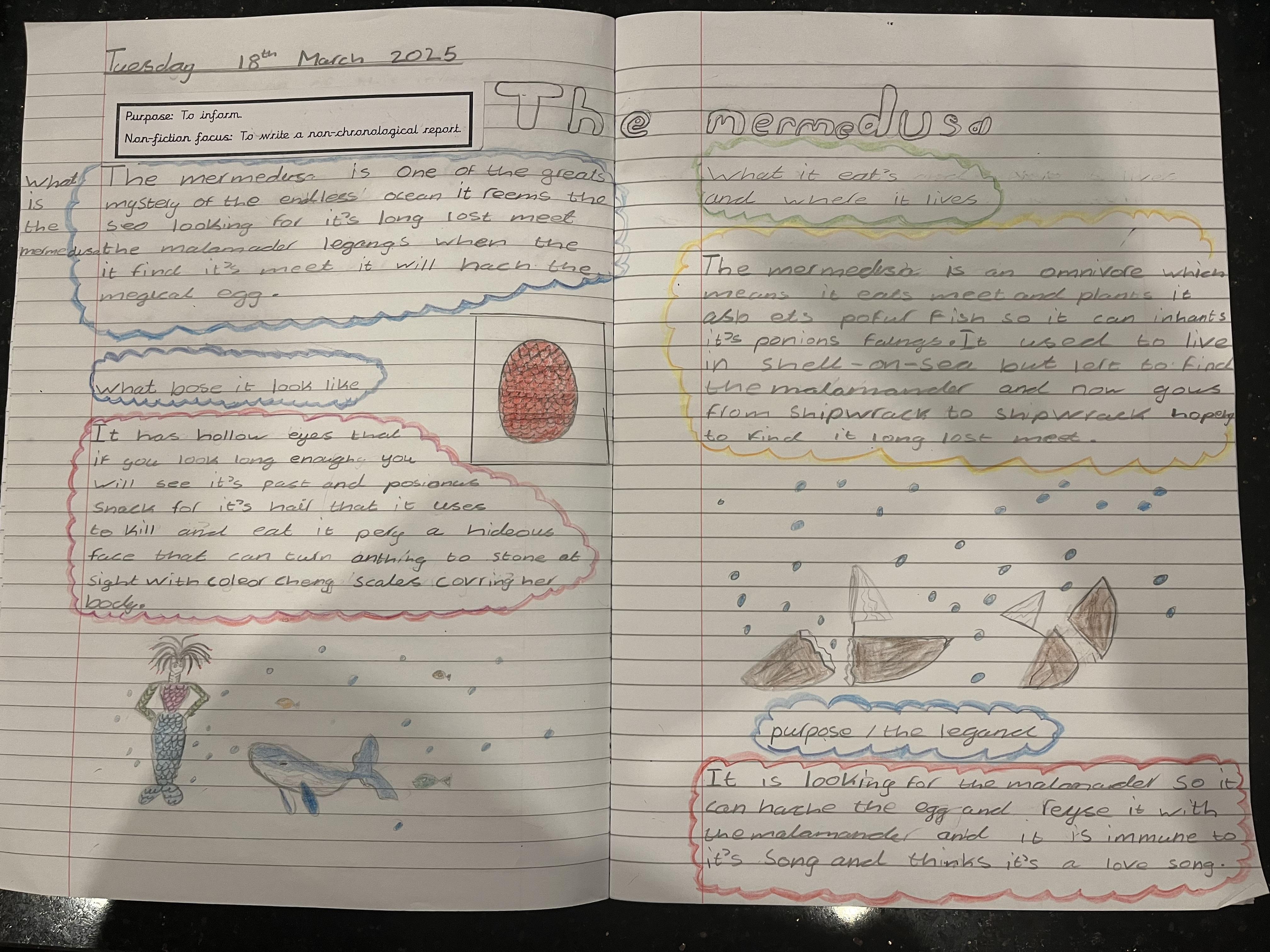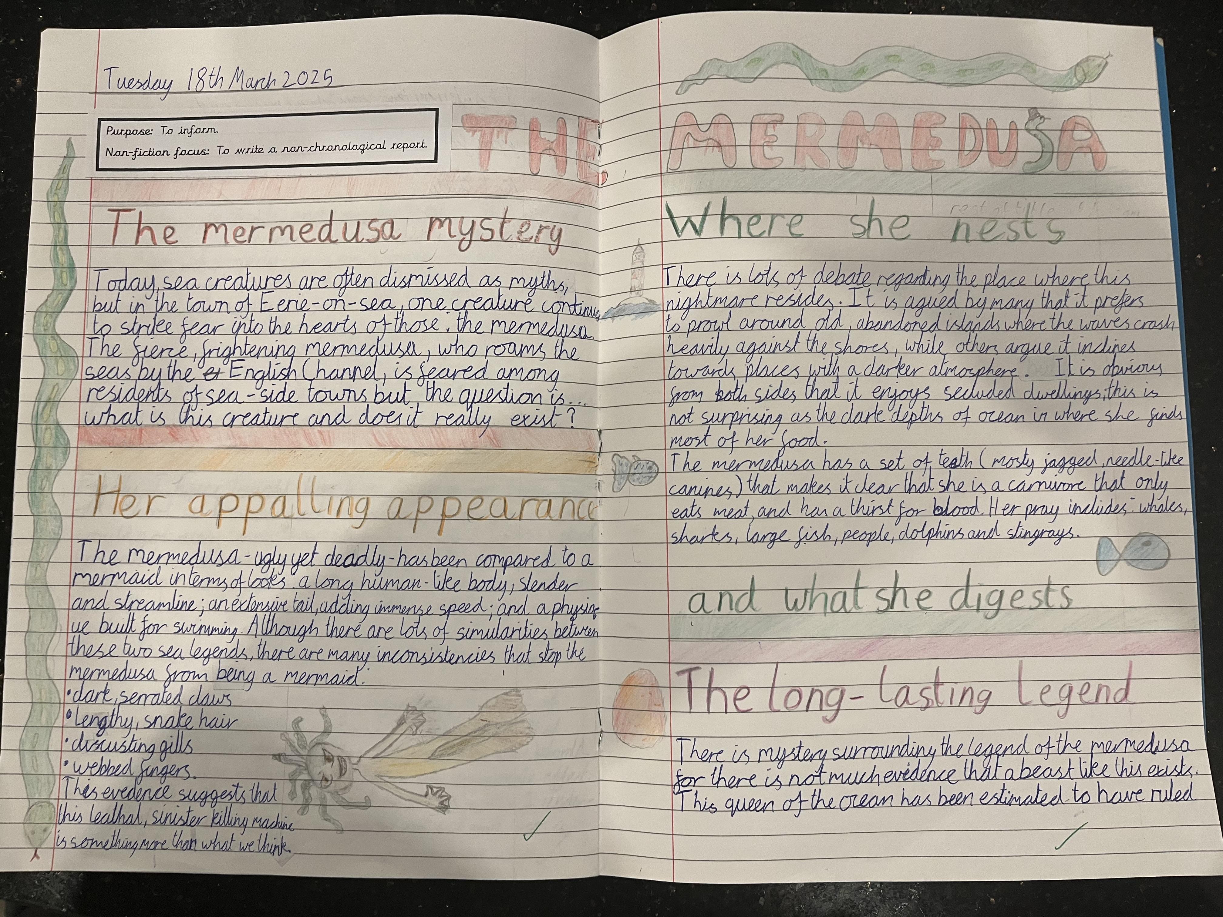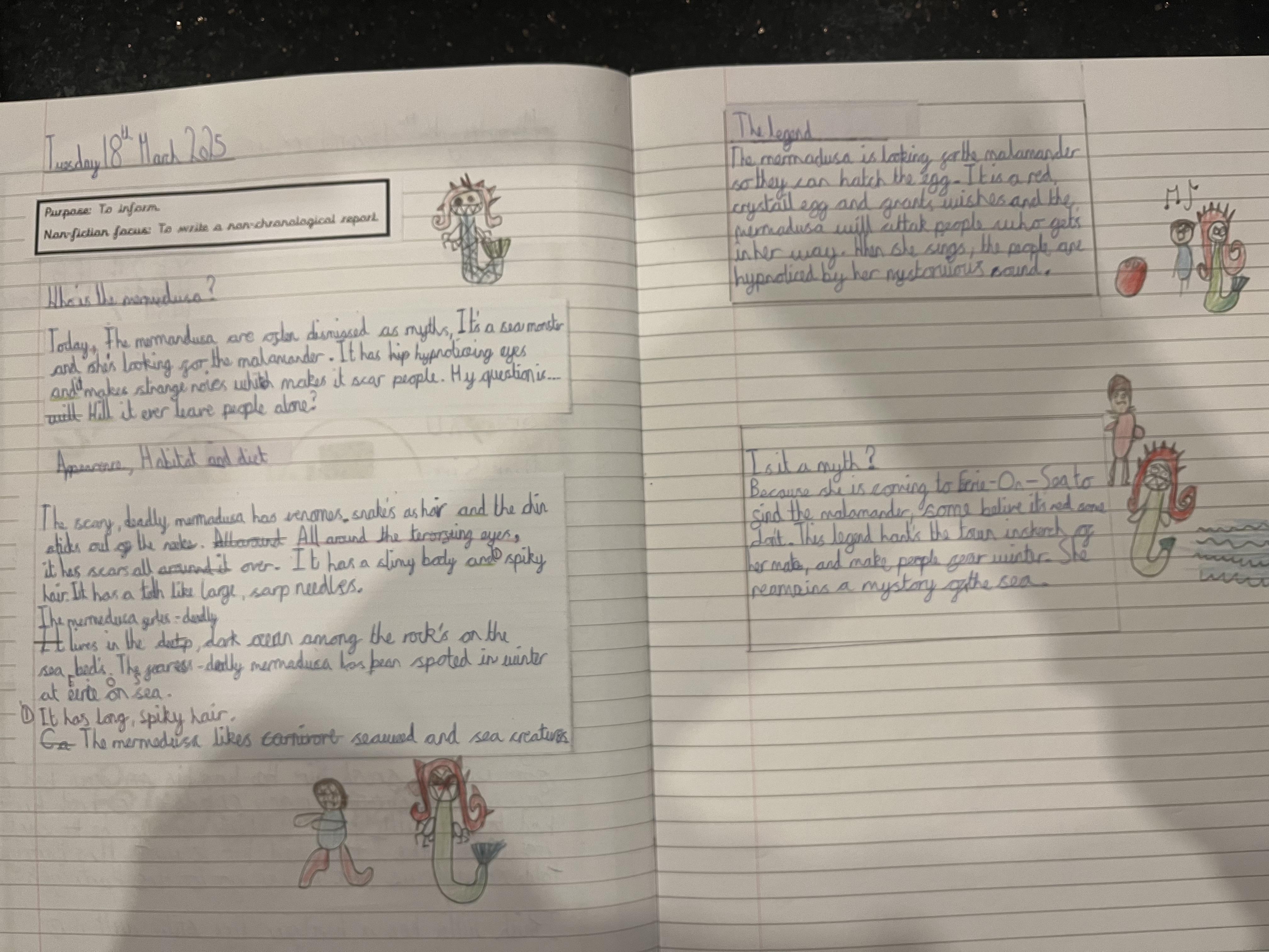 It was really hard to choose from all the amazing work we read, but two creative writers stood out for their description and attention to detail. Well done Hannah and Aurijah who had their work sent to Tony Bradman for him to read.