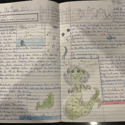 It was really hard to choose from all the amazing work we read, but two creative writers stood out for their description and attention to detail. Well done Hannah and Aurijah who had their work sent to Tony Bradman for him to read.