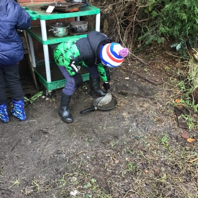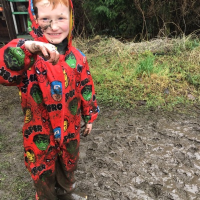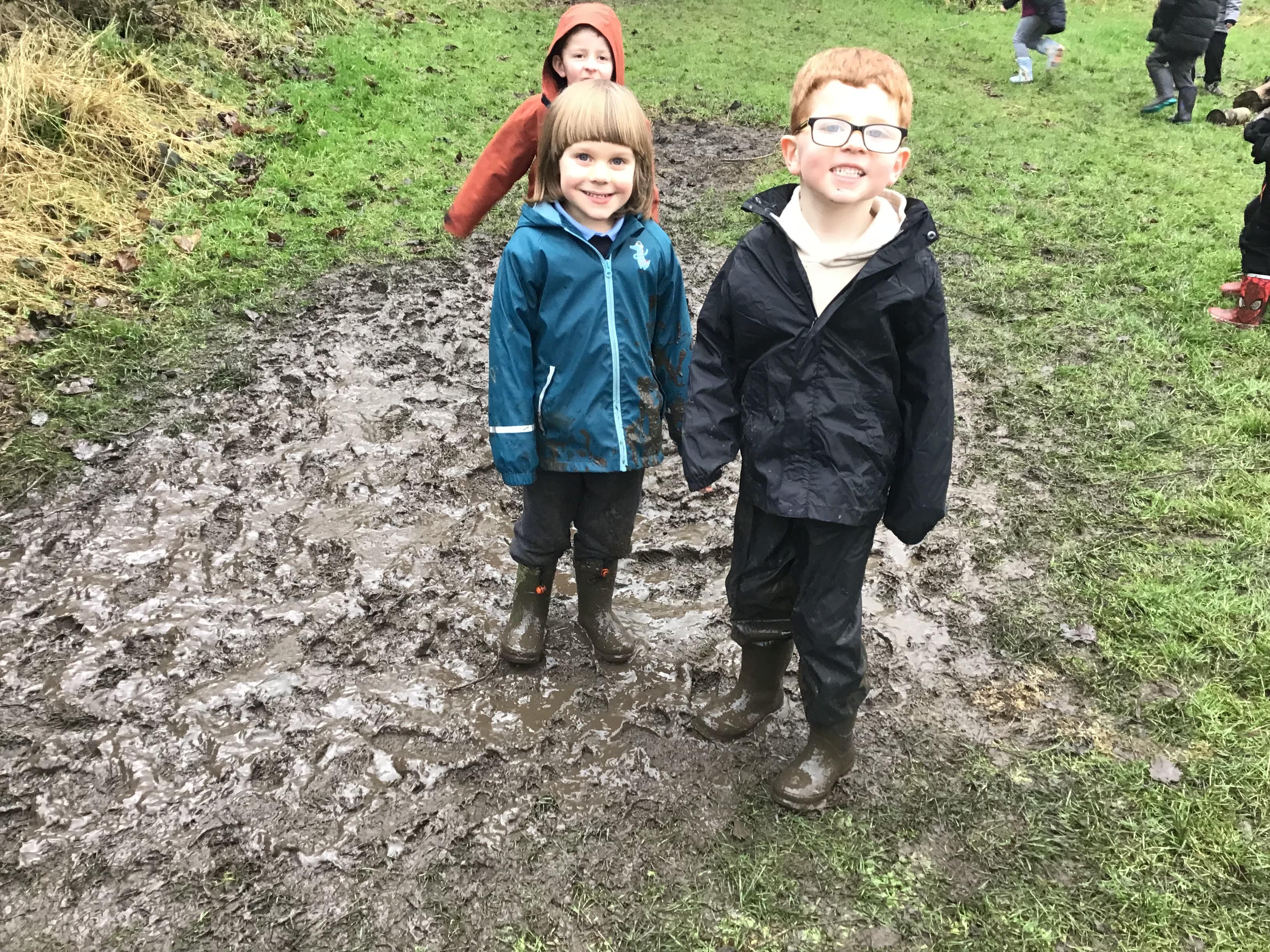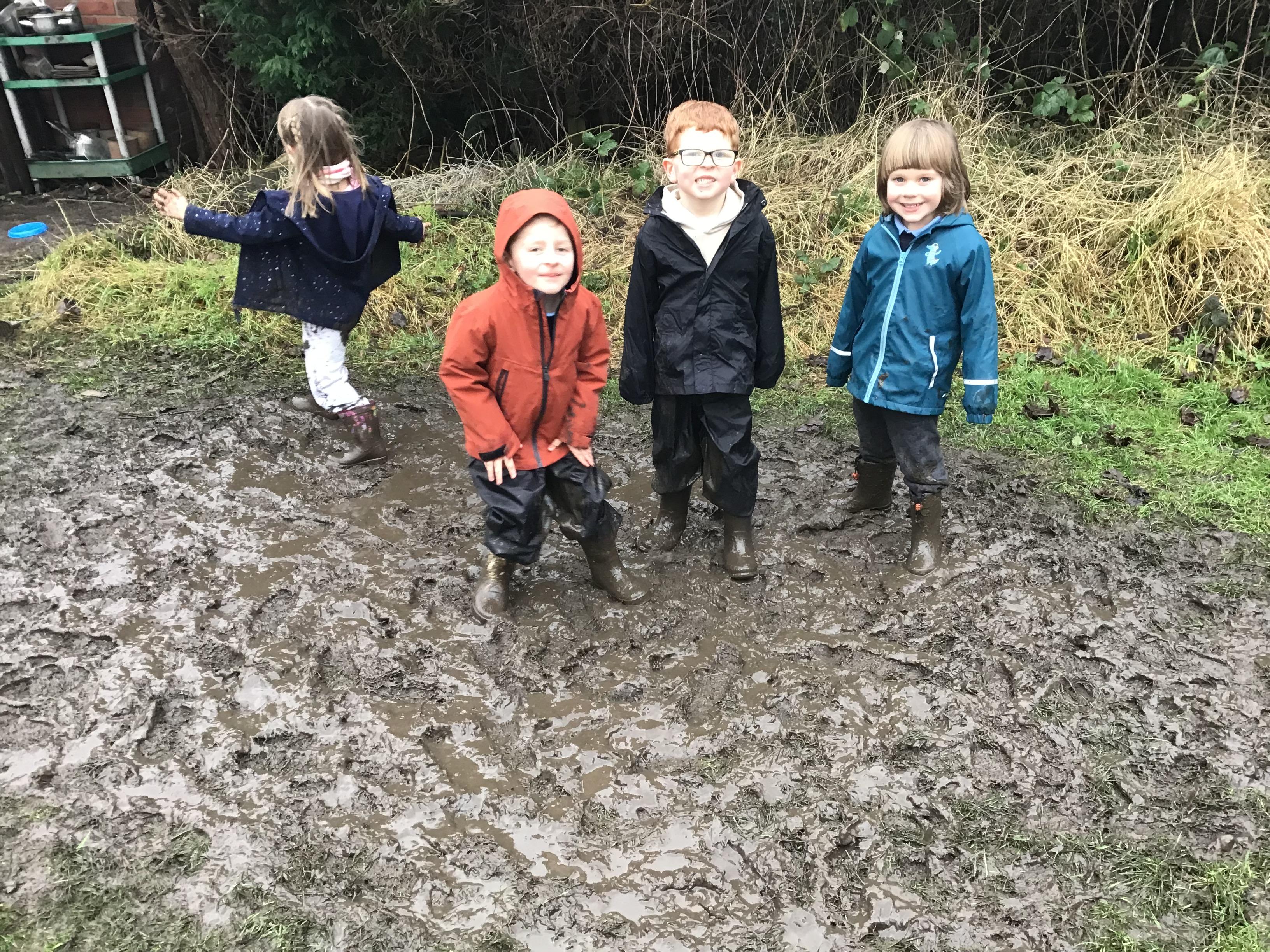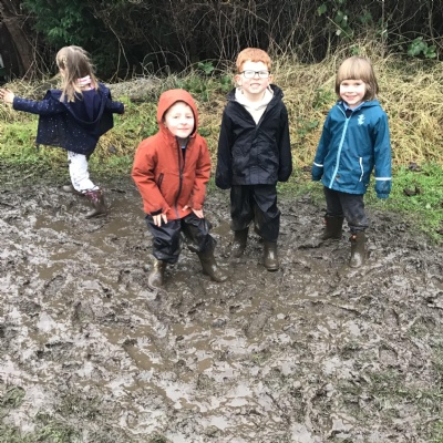 Some of our Reception children explored our Forest School area for the first time! They really enjoyed jumping and splashing around in all of the muddy puddles.