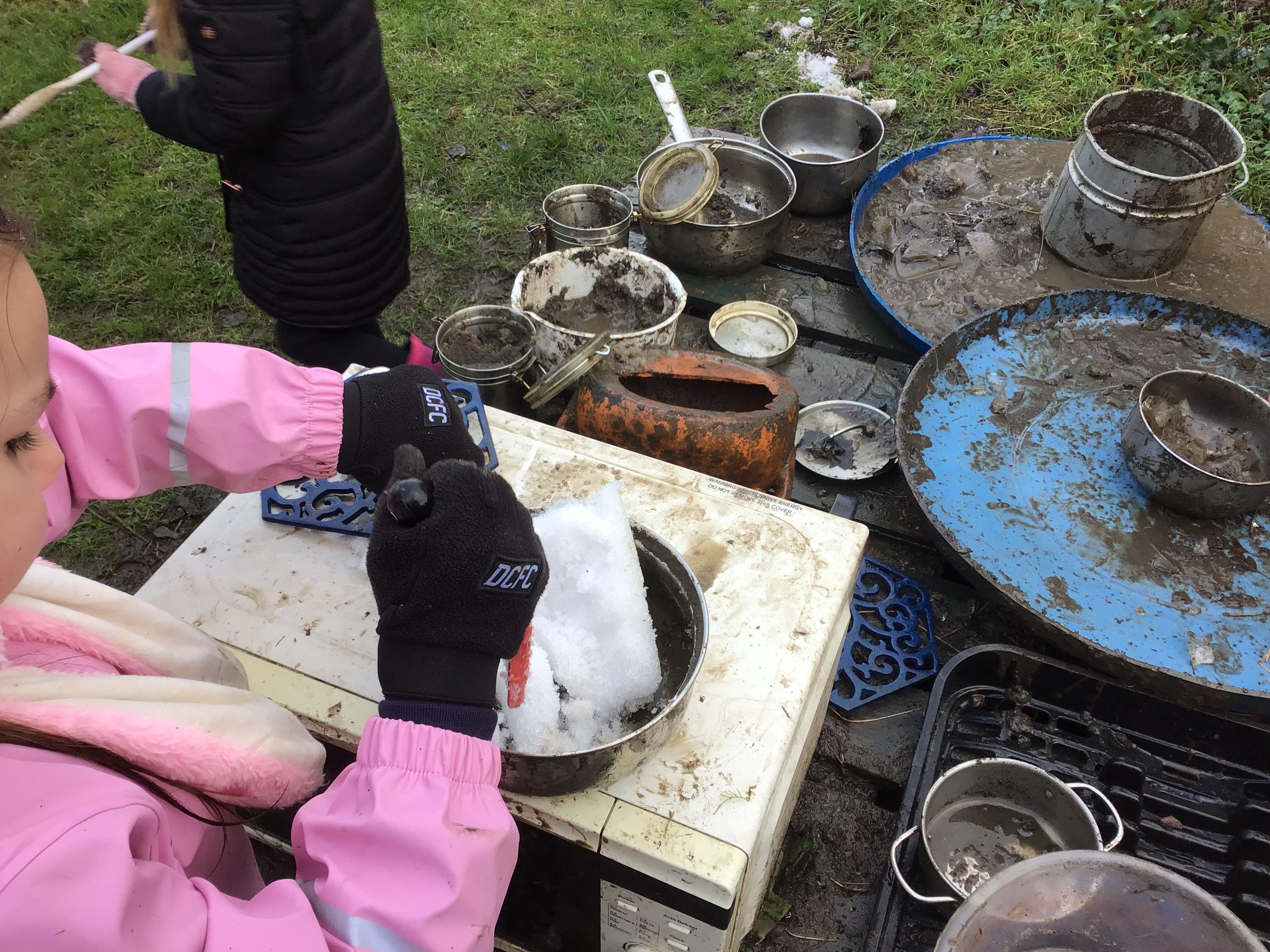 Children enjoy the freedom to explore and experience the natural world in all seasons and in all weathers.