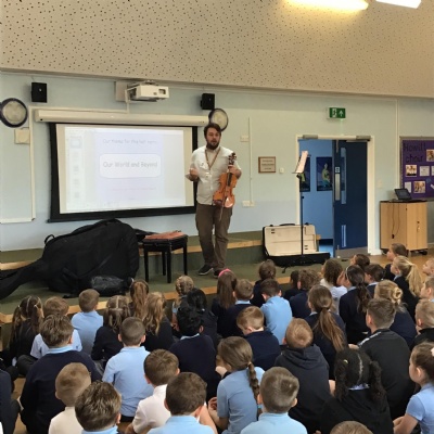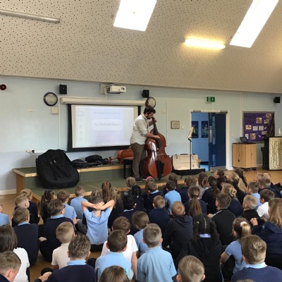 Matthew Barks visited us to get us inspired about learning String instruments. He demonstrated the violin, viola, cello and double bass.