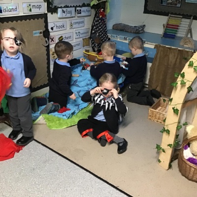 This half term the children have been focusing on traditional tales and our favourite story themes. We started the half term with learning all about the season winter and then start our ‘Tell me a Story’ theme. The children began with some traditional tales and stories, including Goldilocks and the Three Bears and The Three Billy Goats Gruff. The children then choose their own favourite themes and stories, including, pirates, dinosaurs and Supertato. During the half term the children have taken part in different activities relating to our favourite stories.
